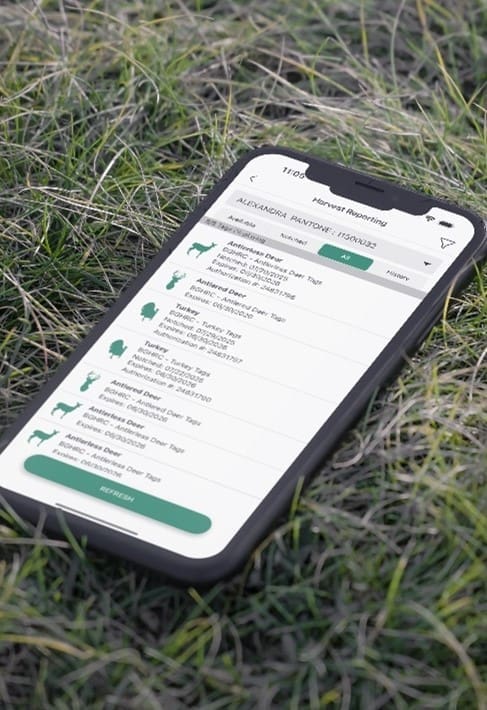 - Hunters record their harvest digitally, directly on a mobile device (even without cellular service), before transporting the carcass.